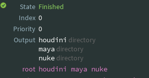 So instead let’s say we have a key root with a value houdini maya nuke ( I don’t like having maya here too, but what can you do…). Now if we split this, we have a list of folders. When we cook this node we will still end up with only one work item as the node does not know we need three. One per folder. The makedir node will only create one folder per work item. That’s the way TOPs work.